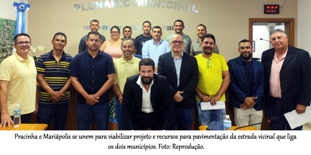 Municípios se unem para viabilizar projeto executivo e buscar recursos para pavimentação da estrada vicinalMariápolis (SP) - Em uma reunião realizada na Câmara Municipal de Mariápolis, vereadores de Pracinha e Mariápolis se encontraram para discutir a elaboração do projeto executivo que prevê a pavimentação da estrada vicinal que conecta os dois municípios. A iniciativa busca unir esforços técnicos e políticos para viabilizar a obra, considerada estratégica para a região.