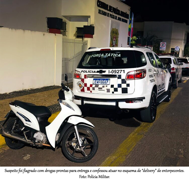 Segundo informações da ocorrência, os agentes avistaram uma motocicleta Honda Bis branca conduzida por um homem já conhecido por denúncias de envolvimento com tráfico na modalidade “delivery”. Ao perceber a viatura, o suspeito demonstrou nervosismo, quase perdeu o controle do veículo e tentou fugir, mas foi abordado poucos metros à frente. Na revista pessoal, foram encontrados apenas R$ 70 em dinheiro. No entanto, dentro do compartimento da motocicleta havia três porções de cocaína. Questionado, o indivíduo confessou que faria a entrega da droga a um cliente e admitiu estar comercializando entorpecentes para obter recursos, alegando que sua namorada está grávida.
