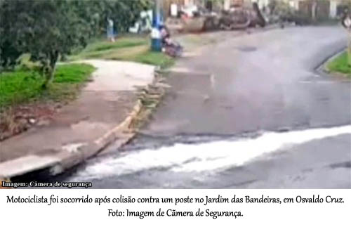 Motociclista de 33 anos é socorrido após colisão contra poste no Jardim das BandeirasOsvaldo Cruz (SP) - Um grave acidente de trânsito foi registrado no final da tarde desta terça-feira (21), em Osvaldo Cruz, e deixou um homem de 33 anos ferido. O caso ocorreu na Rua Espanha, no bairro Jardim das Bandeiras.